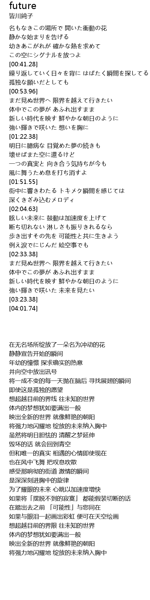 | [03:16.04] | 強い輝きで咲いた 未来を見たい |