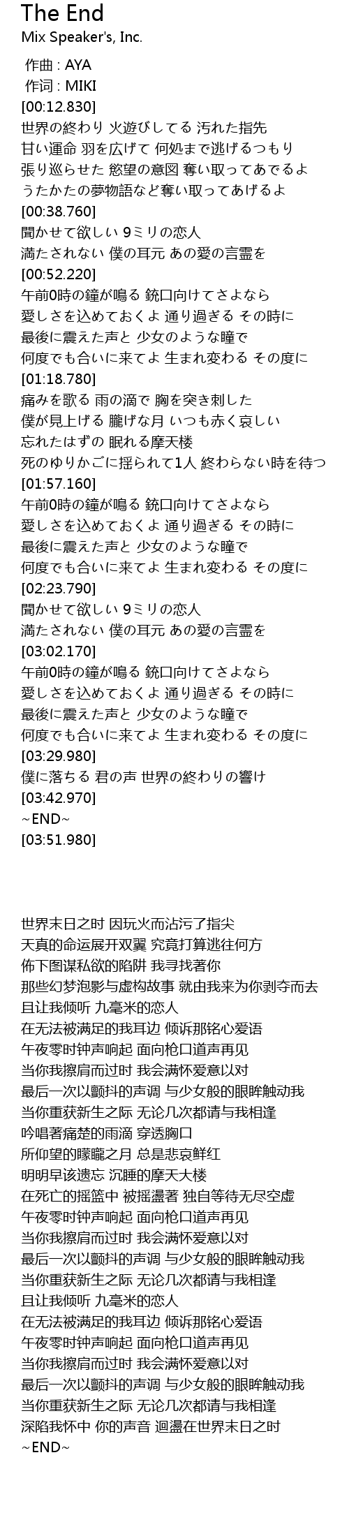 | 歌曲 | The End |