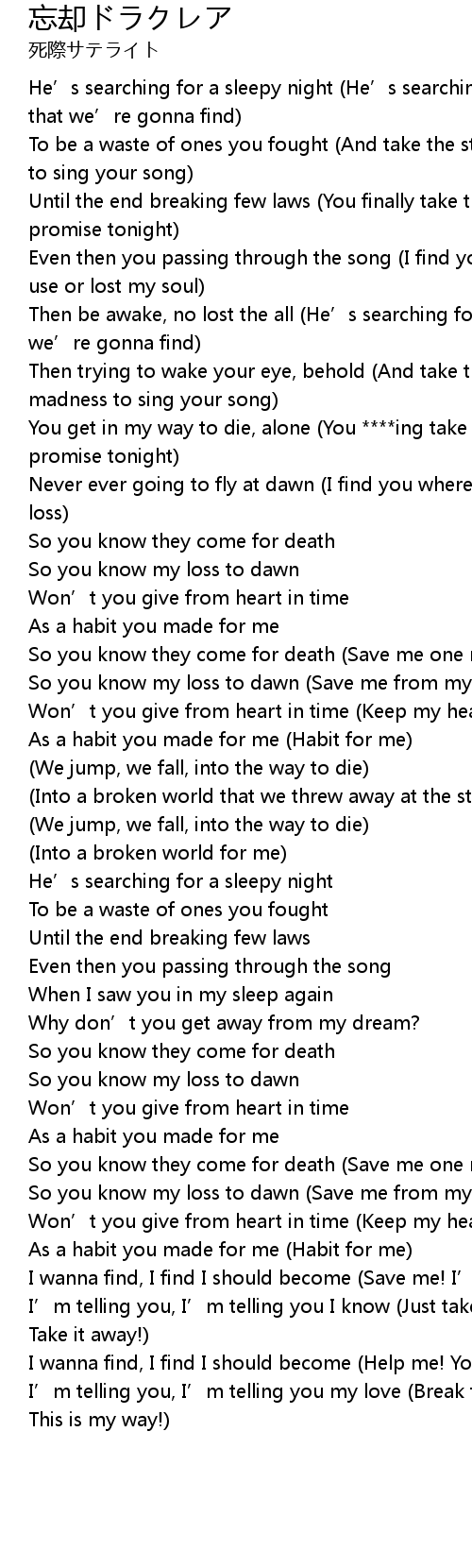 | [02:13.34] | So you know they come for death (Save me one more time) |