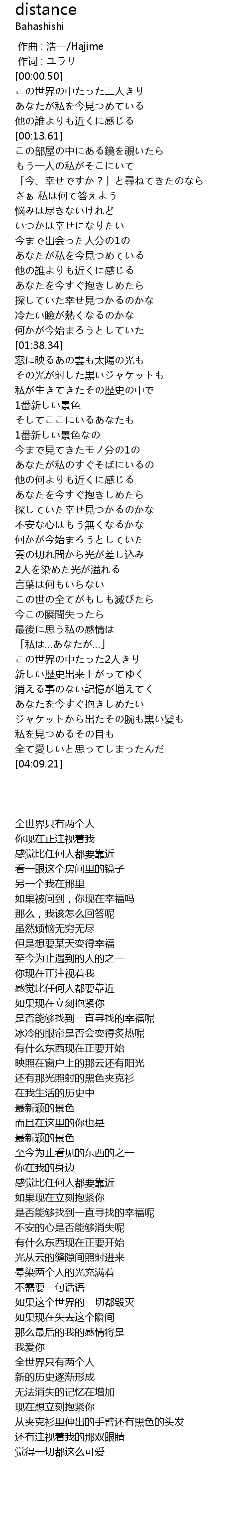 | 歌曲 | distance |