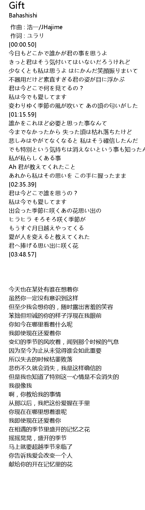 | [00:00.00] | zuo qu : hao yi JHajime |