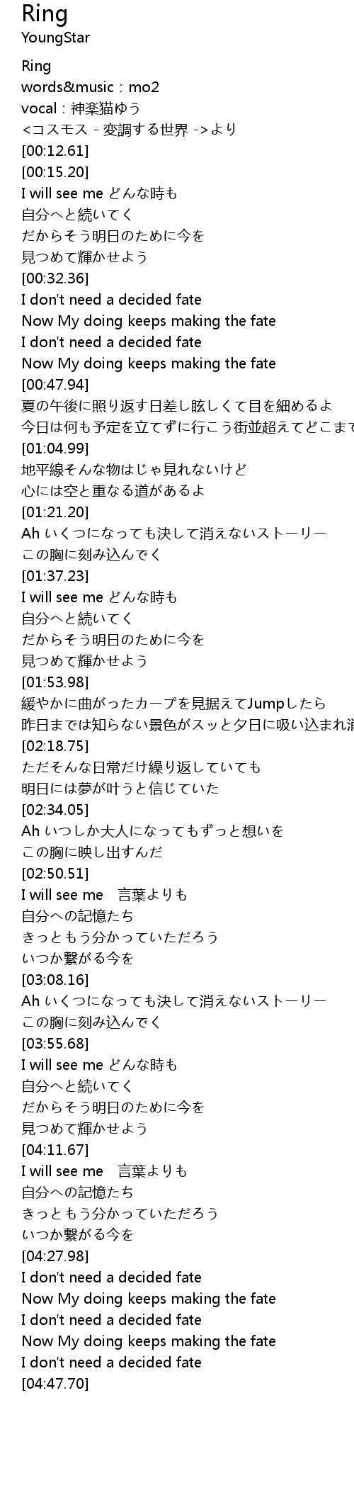 | [00:06.55] | vocal:神楽猫ゆう |