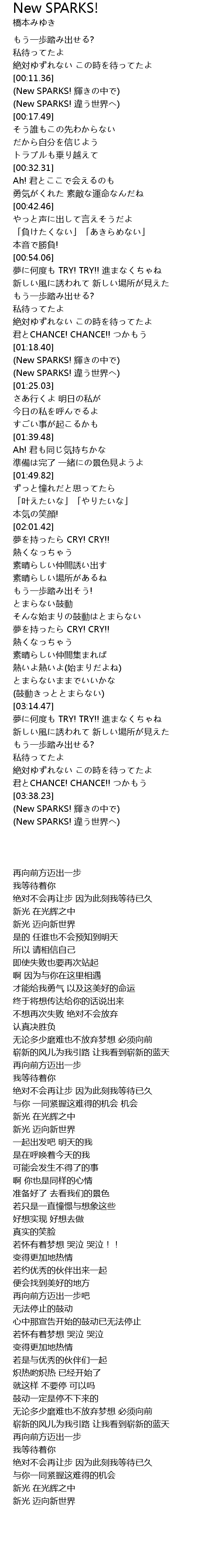 | [03:41.56] | (New SPARKS! 違う世界へ) |