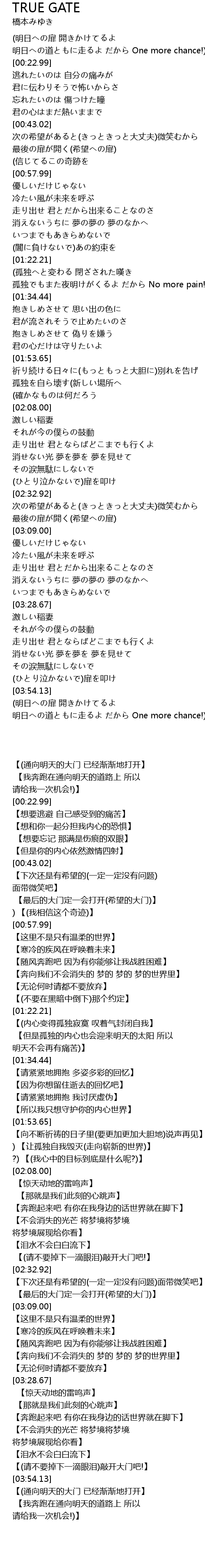 | [03:55.76] | 【(通向明天的大门 已经渐渐地打开】 |