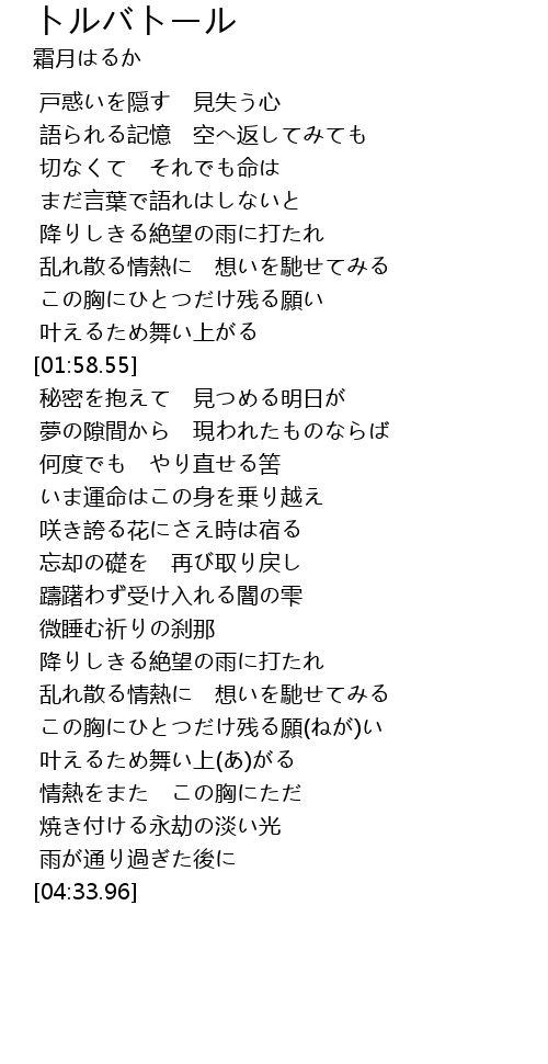 | [01:34.34] | 乱れ散る情熱に 想いを馳せてみる |