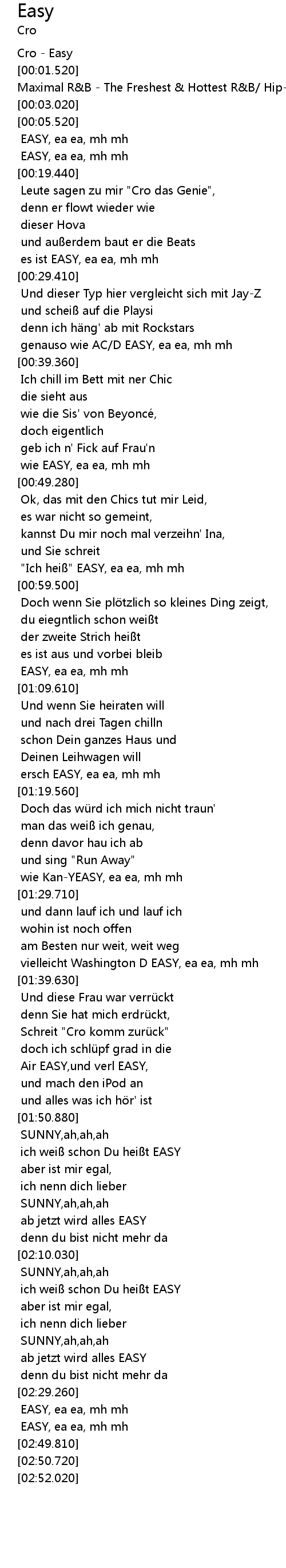 | [00:55.140] | "Ich heiß" EASY, ea ea, mh mh |