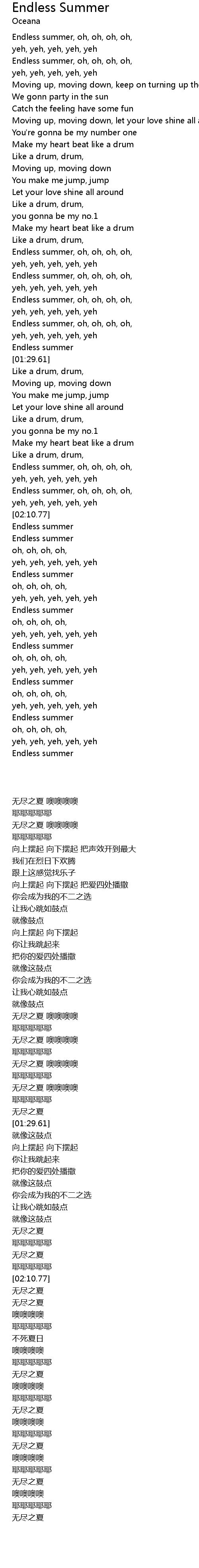 [00:53.05] Endless summer, oh, oh, oh, oh,