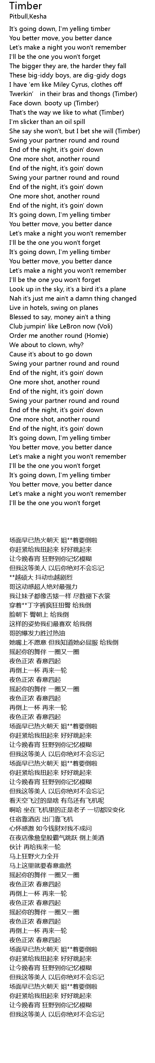 | [00:43.186] | Twerkin' in their bras and thongs Timber |