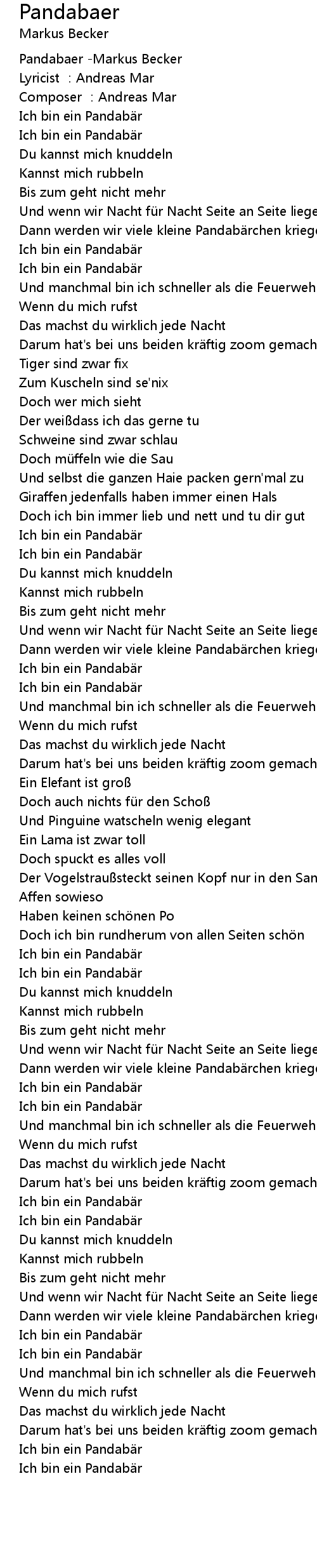 | [02:41.387] | Dann werden wir viele kleine Pandabärchen kriegen |