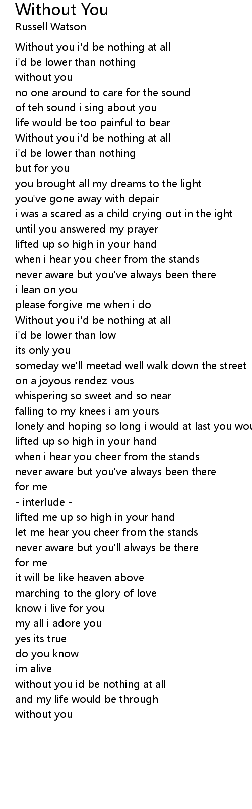 Without you i'd be nothing at all