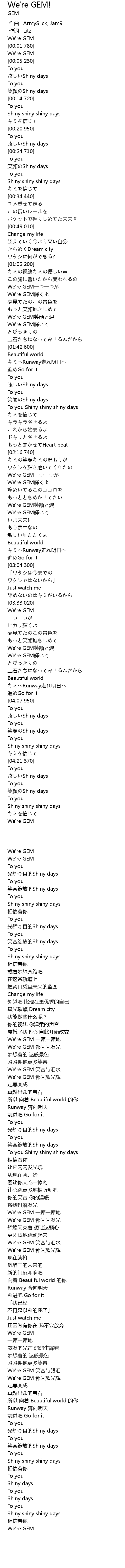 | [01:33.010] | We're GEM 都闪耀光辉 |