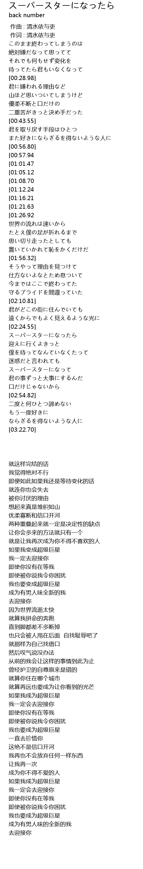| [03:23.26][00:57.94] | スーパースターになったら |
