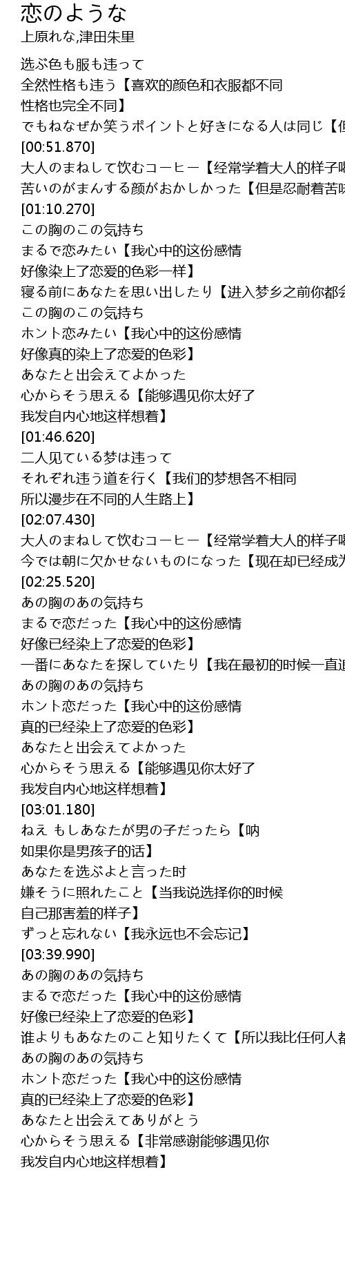 | [03:58.840] | あの胸のあの気持ち ホント恋だった【我心中的这份感情 真的已经染上了恋爱的色彩】 |