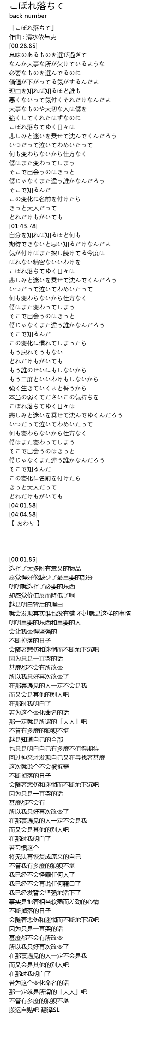 | [02:23.78] | こぼれ落ちてゆく日々は |