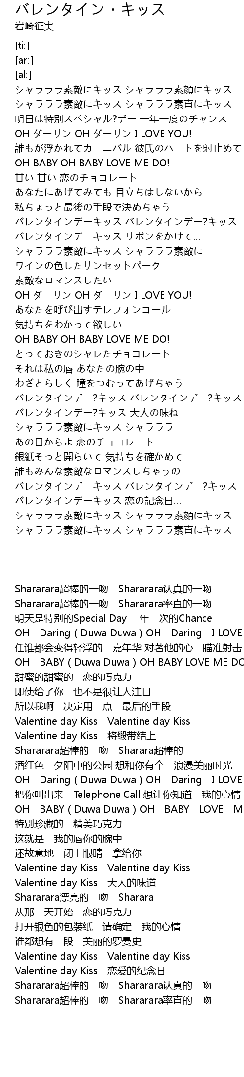 | [02:55.56] | Valentine day Kiss Valentine day Kiss |