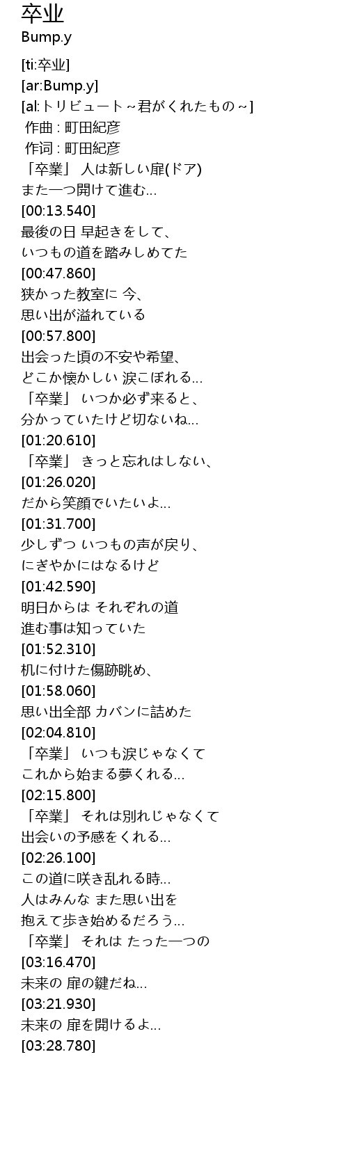 | [00:03.250] | 「卒業」 人は新しい扉(ドア) |