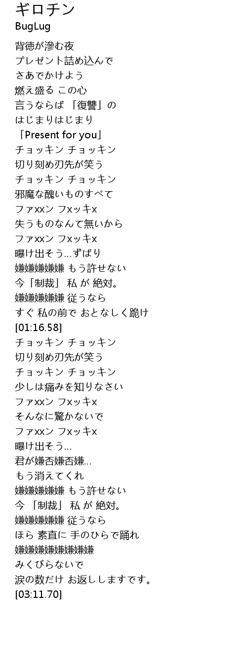 | [02:42.50] | 嫌嫌嫌嫌嫌 もう許せない |