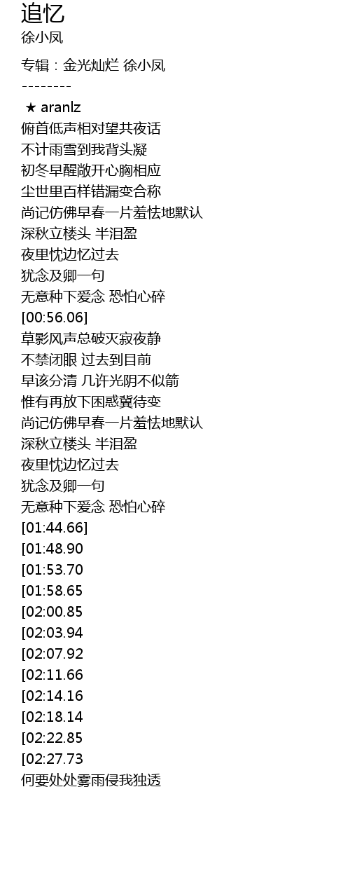 | [00:04.00] | 专辑:金光灿烂 徐小凤 |