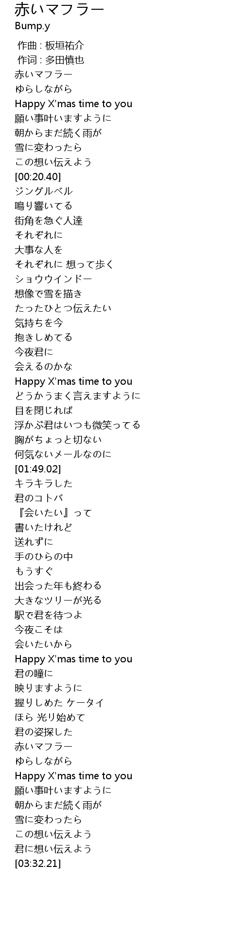 | [03:07.32] | 赤いマフラー |