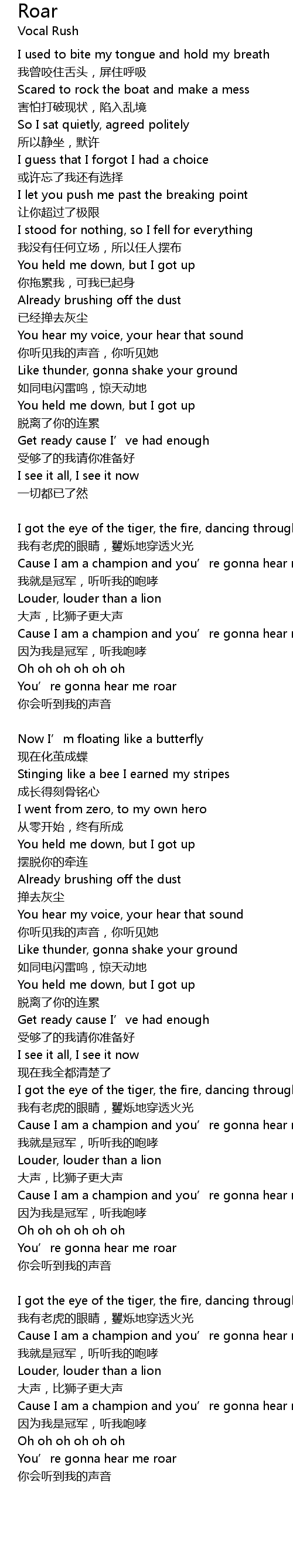 | Cause I am a champion and you’re gonna hear me roar | |