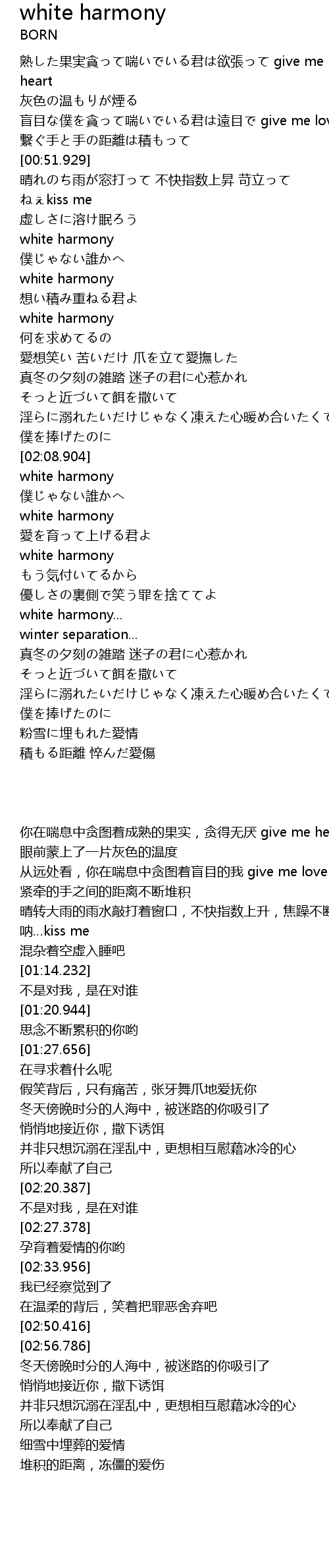 | [01:54.320] | 淫らに溺れたいだけじゃなく凍えた心暖め合いたくて |