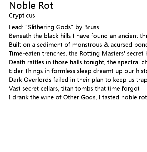 | Time-eaten trenches, the Rotting Masters' secret keep | |