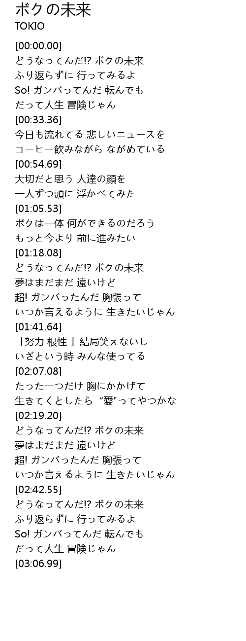 | [02:42.99] | どうなってんだ!? ボクの未来 |