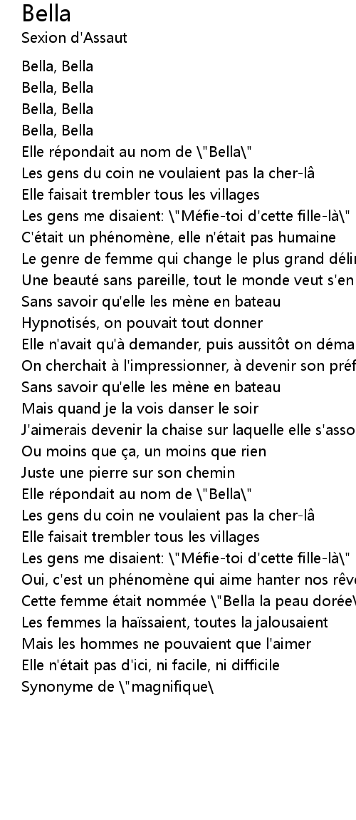 | Cette femme e tait nomme e " Bella la peau dore e" | |