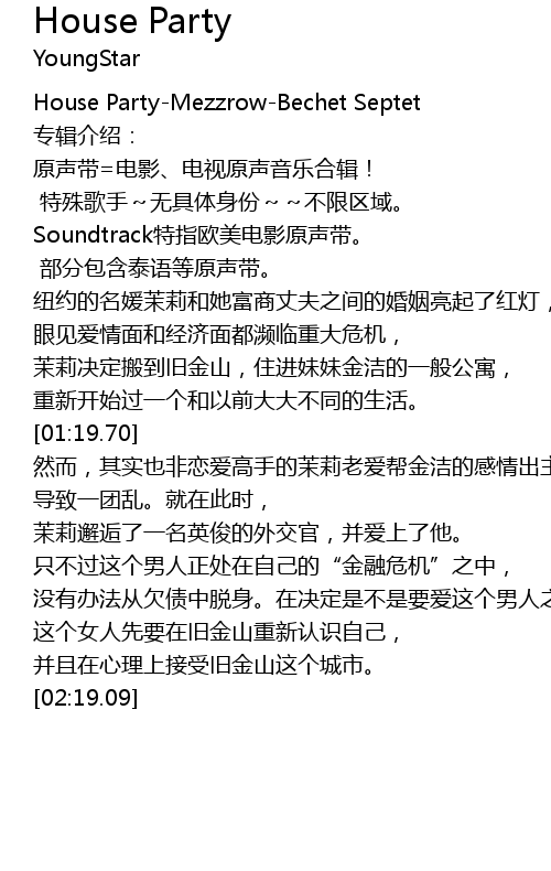 | [00:02.27] | House Party-Mezzrow-Bechet Septet |