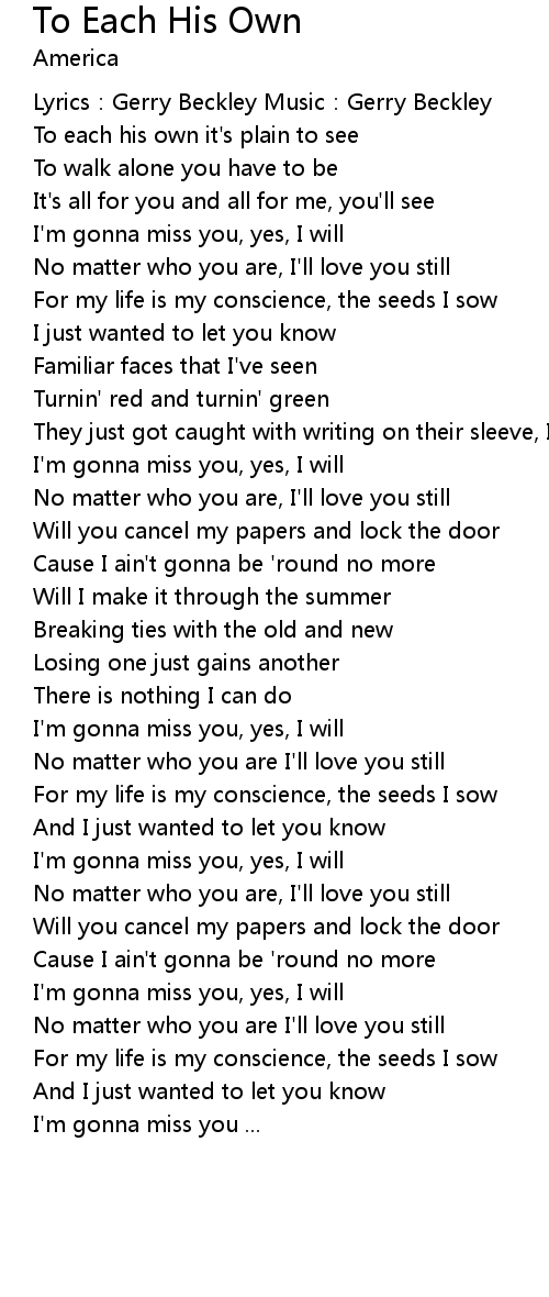 | 歌曲 | To Each His Own |