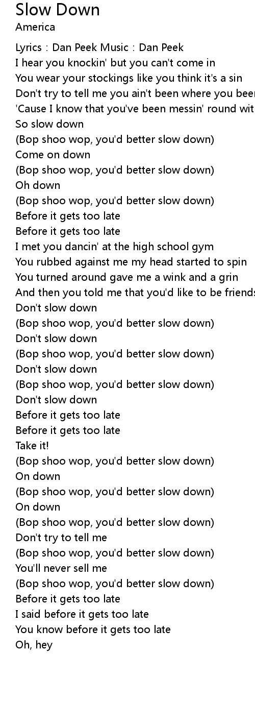 | Bop shoo wop, you' d better slow down | |