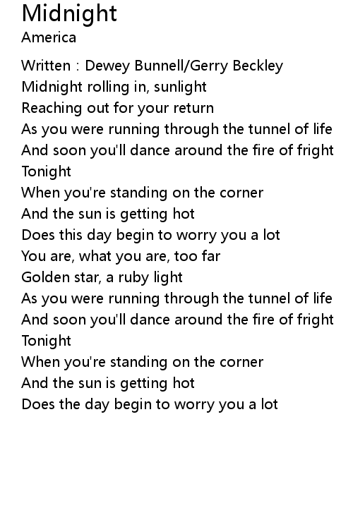 | Midnight rolling in, sunlight | |