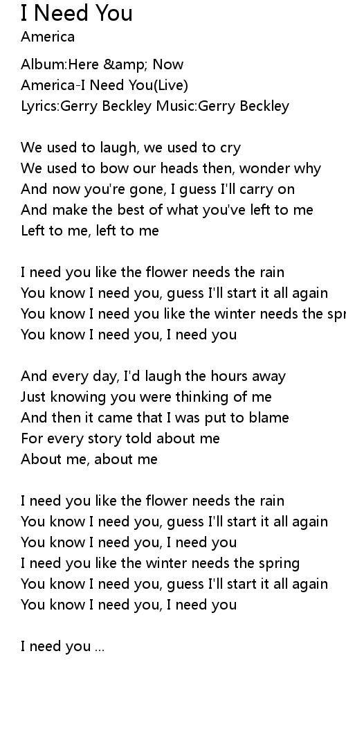 I need you ... |
