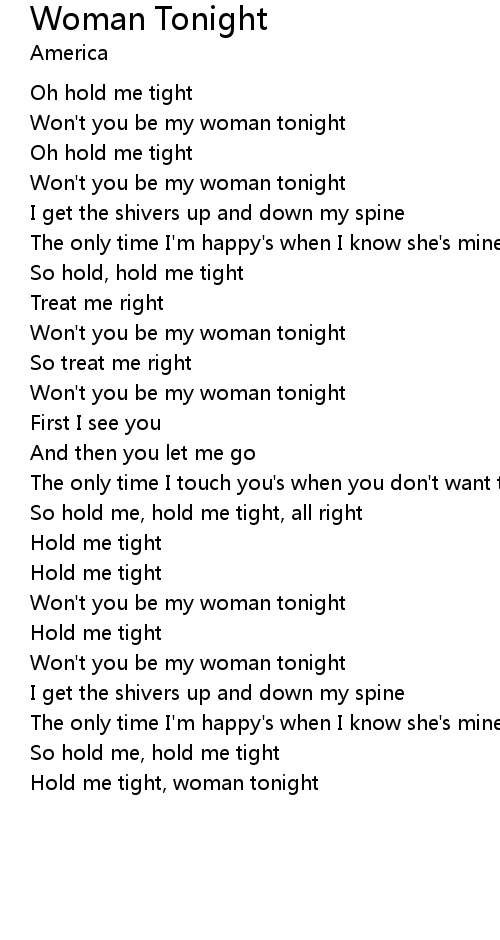Hold me tight, woman tonight