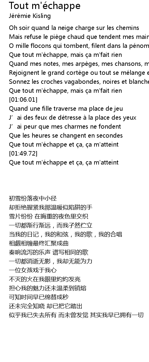 | 歌曲 | Tout m'échappe |