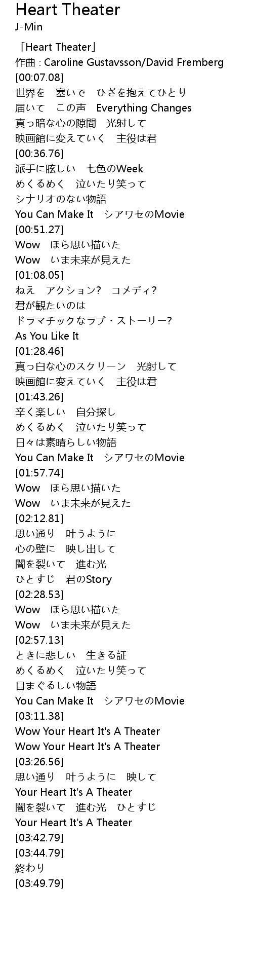 | [00:00.08] | 「Heart Theater」 |