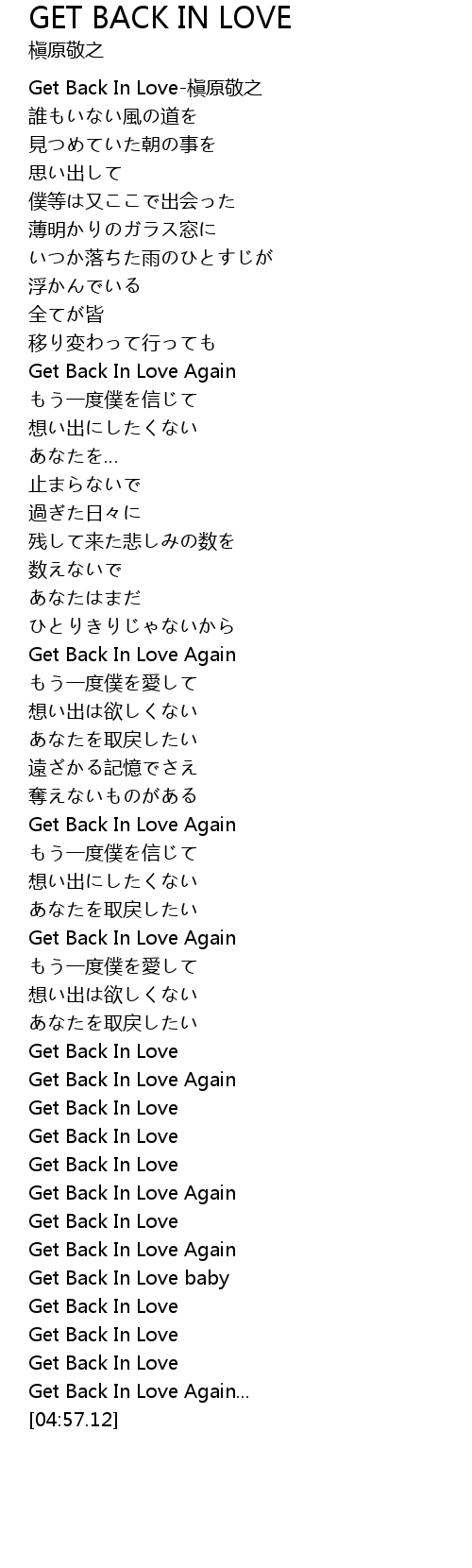| [00:00.03] | Get Back In Love-槇原敬之 |