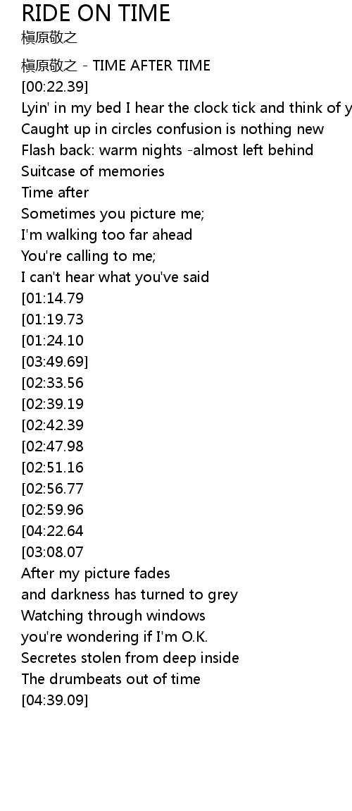 | [04:27.18][04:22.64][03:05.54][01:59.55] | Time after time |