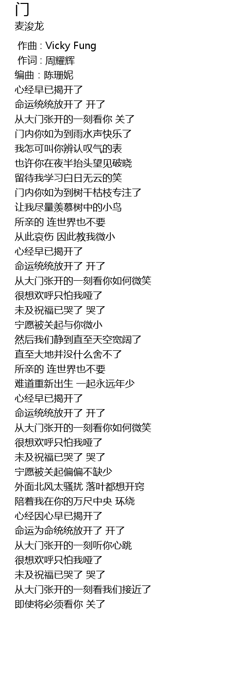 | [00:18.15] | 从大门张开的一刻看你 关了 |
