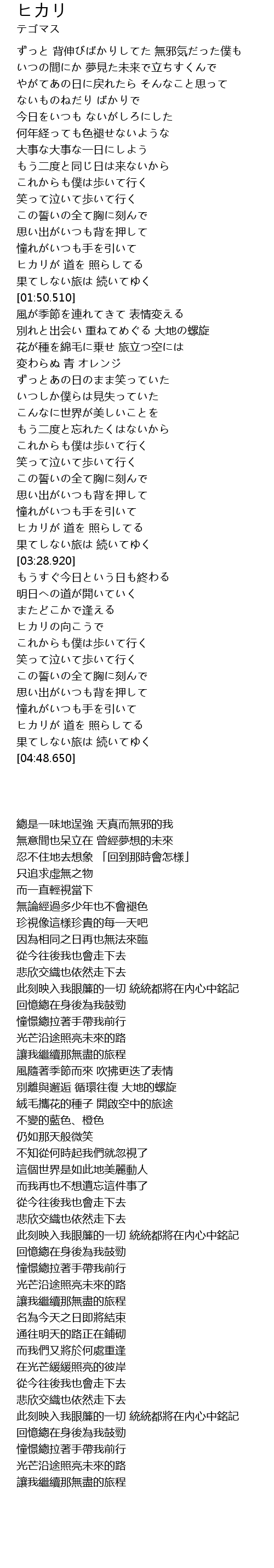 | [03:16.910] | ヒカリが 道を 照らしてる |