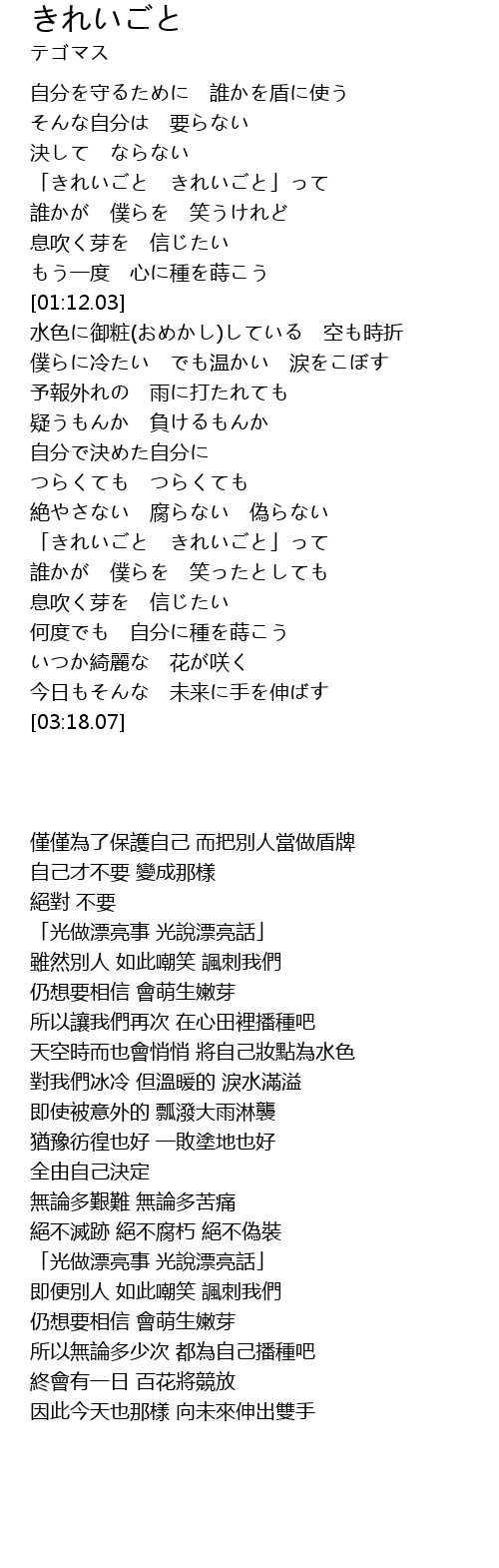 | [00:42.12] | 「きれいごと きれいごと」って |