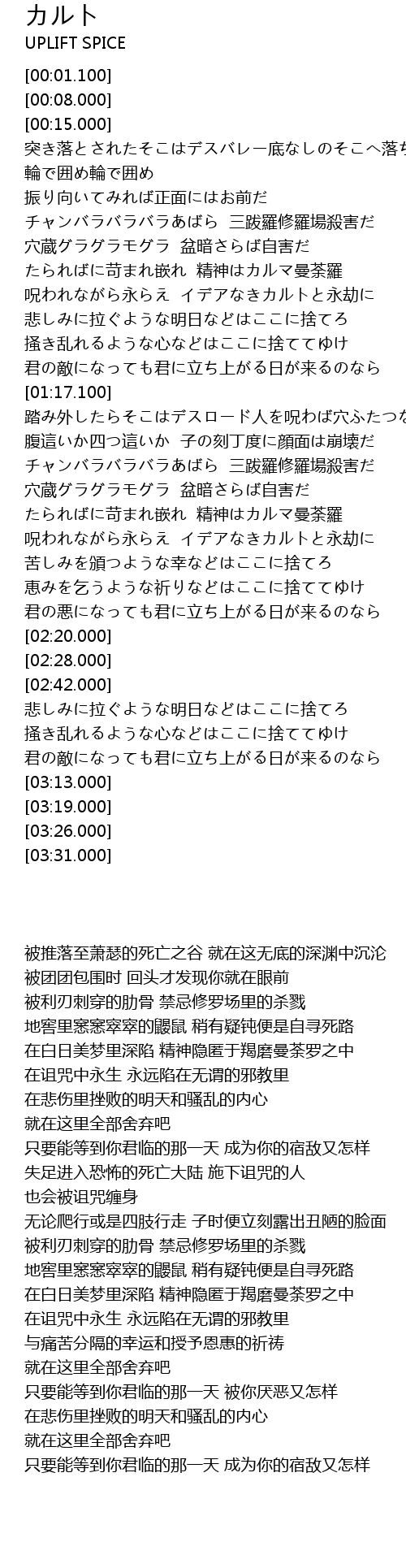 | [01:48.000] | 呪われながら永らえ イデアなきカルトと永劫に |
