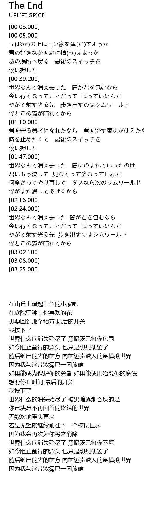 | [02:49.000] | やがて射す光る先 歩き出すのはシムワールド |