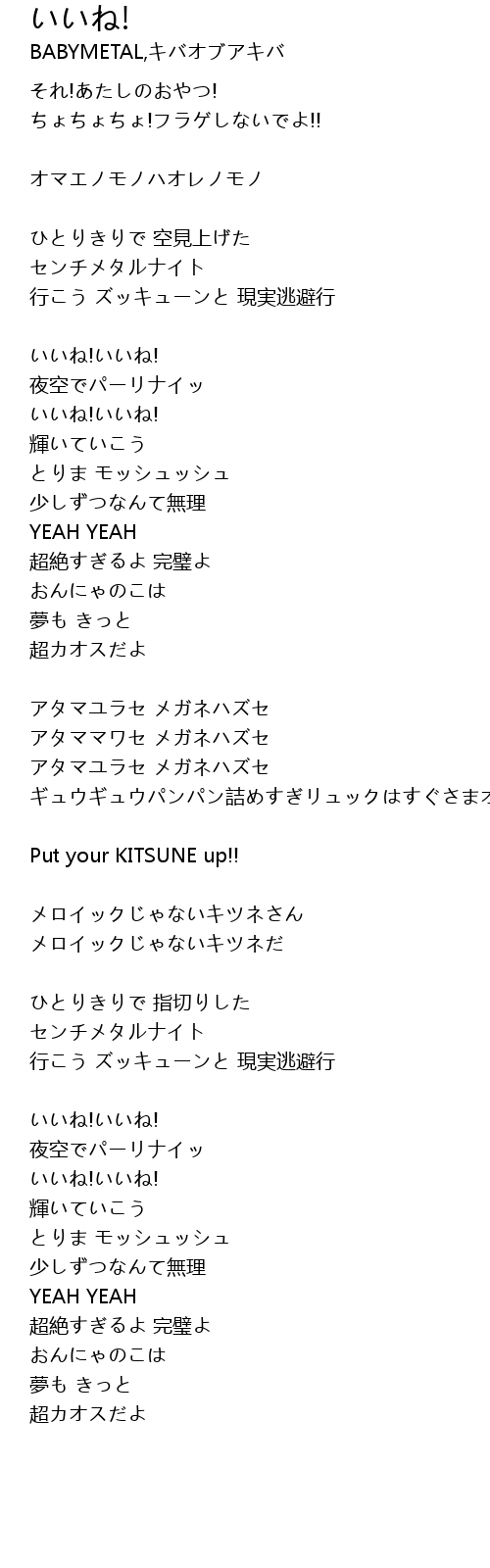 | メロイックじゃないキツネさん | |