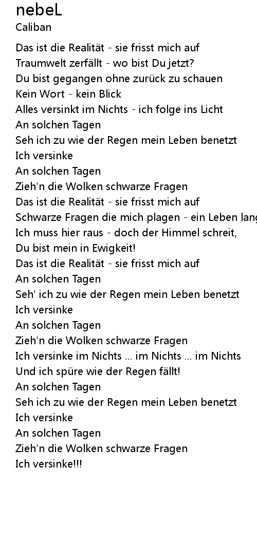 | Ich muss hier raus doch der Himmel schreit, | |
