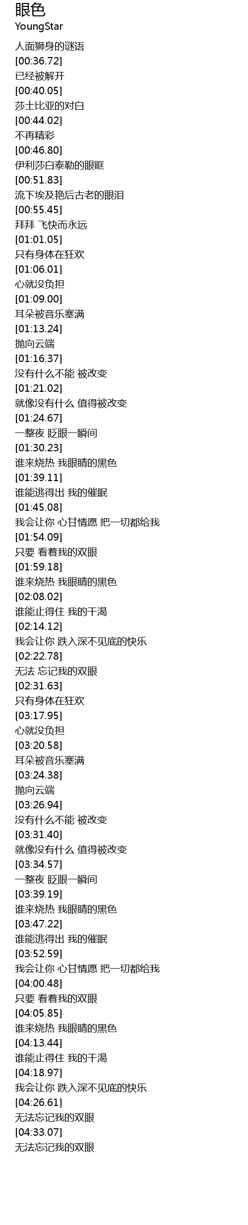 | [03:42.28] | 谁来烧热 我眼睛的黑色 |