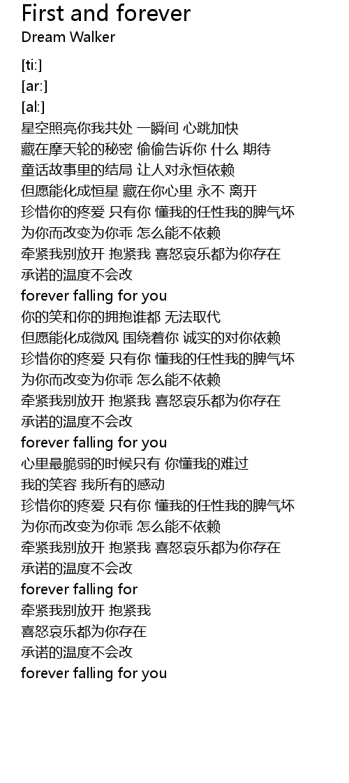 | [01:24.22] | dan yuan neng hua cheng wei feng wei rao zhe ni cheng shi de dui ni yi lai |