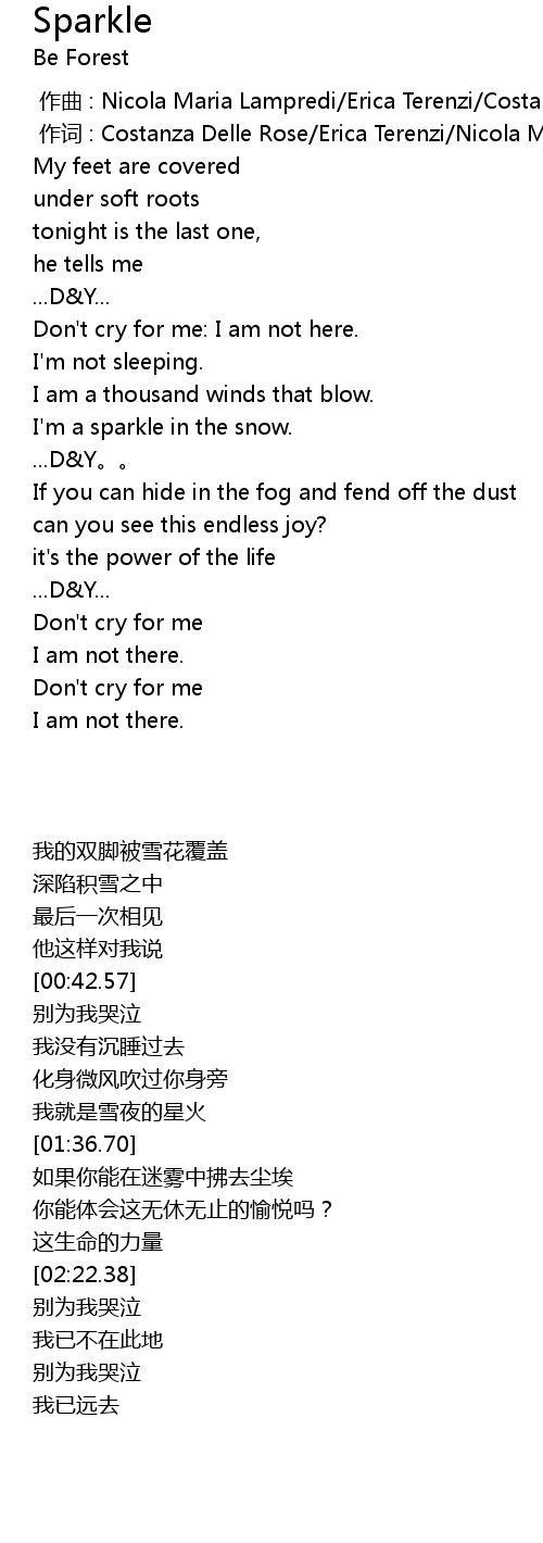 | [01:30.57] | I' m a sparkle in the snow. |