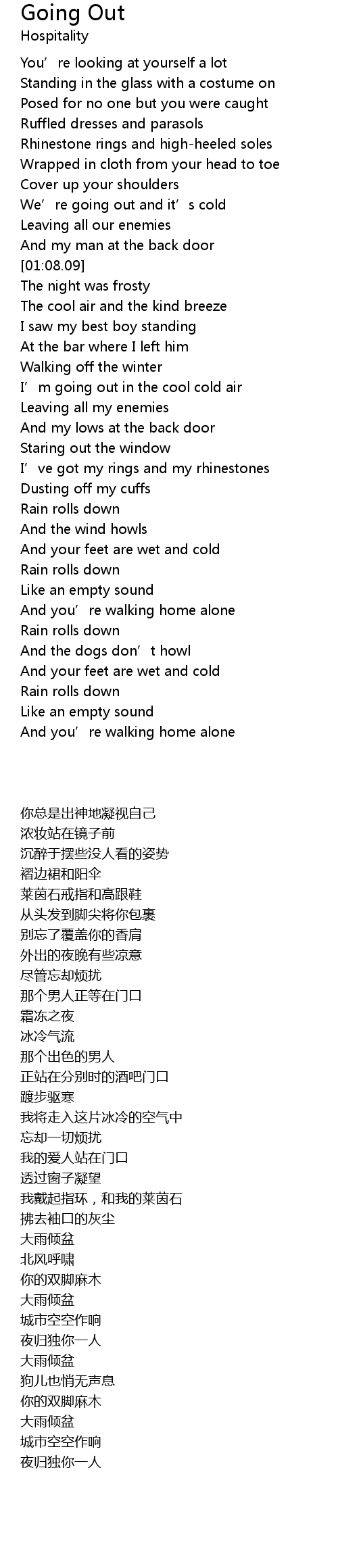 | [00:50.39] | We' re going out and it' s cold |