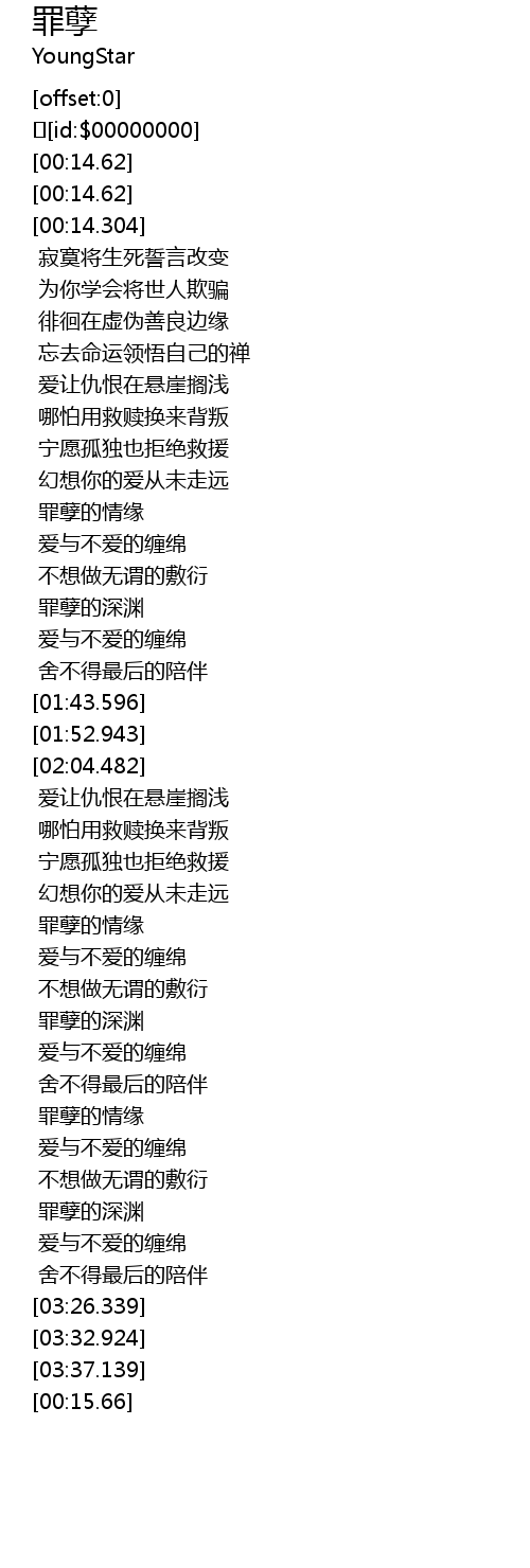 | [02:36.307] | 罪孽的情缘 |